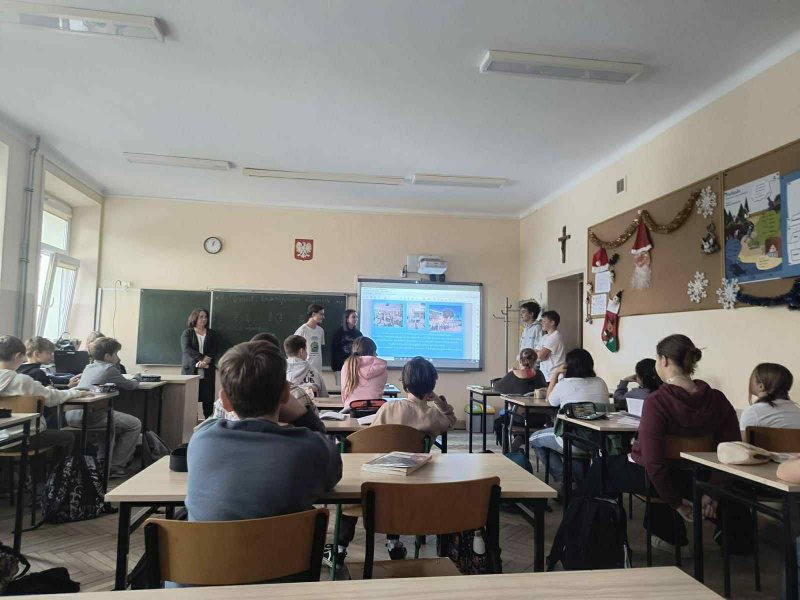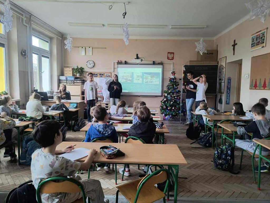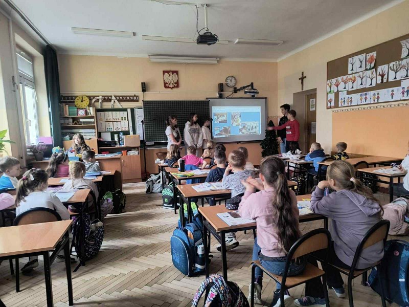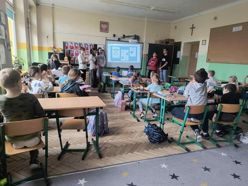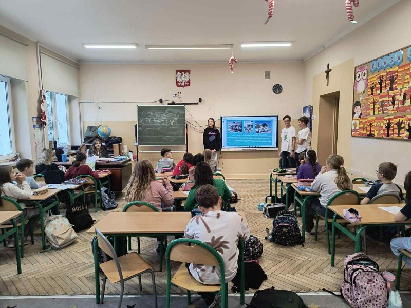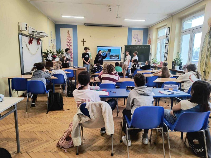 W ramach podsumowania projektu FERS pt. „Edukacja i działanie na rzecz zrównoważonej przyszłości przez uczniów Szkoły Podstawowej nr 14 w Pabianicach” jego uczestnicy przedstawili społeczności szkolnej krótką prezentację podsumowującą dwutygodniowy pobyt w Grecji. Była to okazja do podzielenia się wrażeniami i zdobytymi doświadczeniami oraz zaprezentowania poszczególnych etapów projektu, jego realizacji oraz uzyskanych efektów. Wszyscy uczniowie naszej szkoły z zainteresowaniem wysłuchali opowieści koleżanek i kolegów, obejrzeli fotorelację z wyjazdu, oraz uzyskali odpowiedzi na pytania dotyczące projektu.